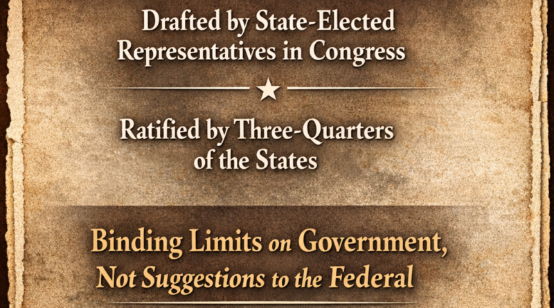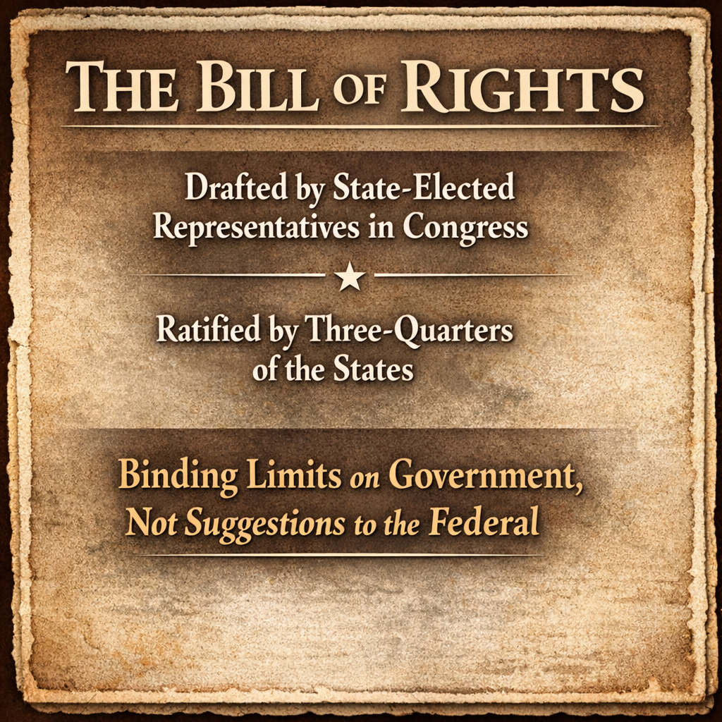 That conclusion is incompatible with the Ninth Amendment, which recognizes that rights preexist enumeration, and with the fundamental principle that constitutions limit government rather than empower courts to invent mechanisms of enforcement. Although the Bill of Rights was proposed by Congress, its provisions were drafted by representatives elected from the several states and acquired legal force only through ratification by three-quarters of the states. If these rights preexisted enumeration, then their ratification reflects the states’ acceptance of their specificity and function as binding constitutional limits, not abstract principles awaiting later judicial redistribution.